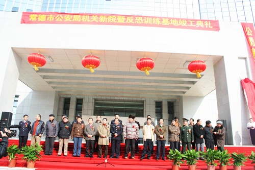 2010年上午10點(diǎn)58分,常德市公安局機(jī)關(guān)新院暨反恐訓(xùn)練基地竣工儀式在新大樓前坪準(zhǔn)時(shí)拉開(kāi)序幕。中*共湖南省委委員、省公安廳黨委副書(shū)記、常務(wù)副廳長(zhǎng)唐中元,中*共常德市委副書(shū)記、市長(zhǎng)陳文浩,中*共常德市委副書(shū)記曹儒國(guó),常德市人大常委會(huì)主任劉本之,常德市政協(xié)主席劉春林,市委常委、市政法委書(shū)記胡宗清,市委常委歐運(yùn)崇,市委常委、常務(wù)副市長(zhǎng)劉小明,市委常委、副市長(zhǎng)宋冬春,市委常委、市軍分區(qū)司令員董正武,市委常委、市統(tǒng)戰(zhàn)部部長(zhǎng)李?lèi)?ài)國(guó)等領(lǐng)導(dǎo)以及公司董事長(zhǎng)張照耀先生出席了儀式。